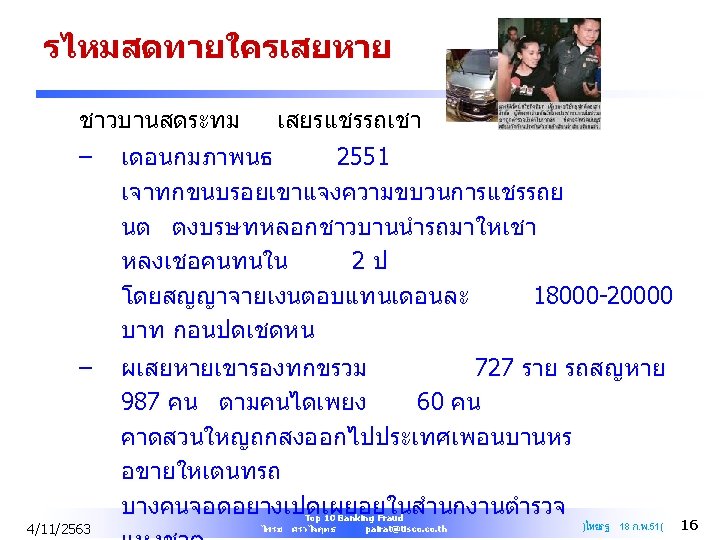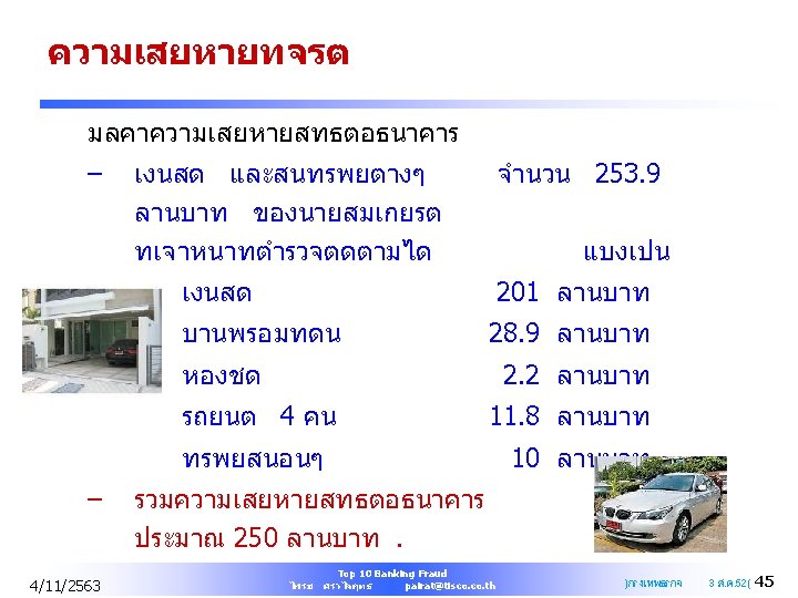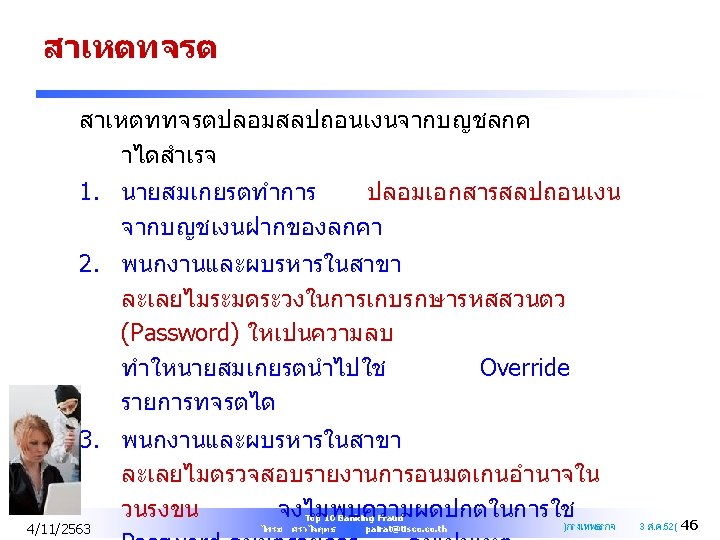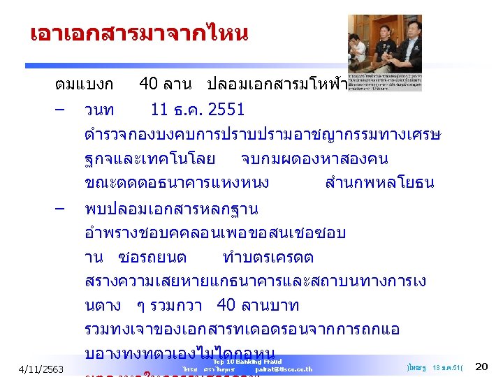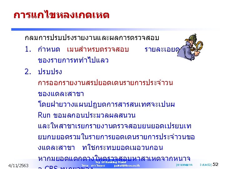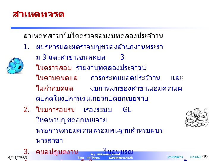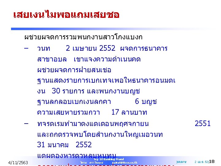 Q&A PAIRAT SRIVILAIRIT SVP Head of Internal Audit TISCO Financial Group Public Company Limited Mobile : +668 1903 1457 Office : +66 2633 7821 Email : pairat@tisco. th 4/11/2563 Top 10 Banking Fraud ไพรช ศรวไลฤทธ pairat@tisco. th 61