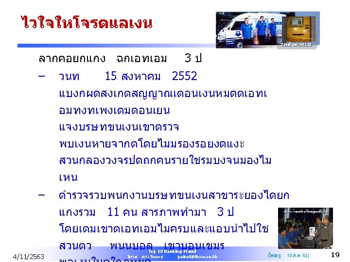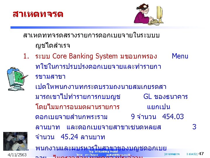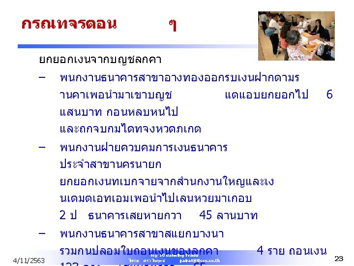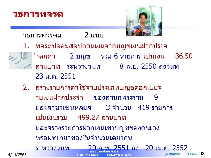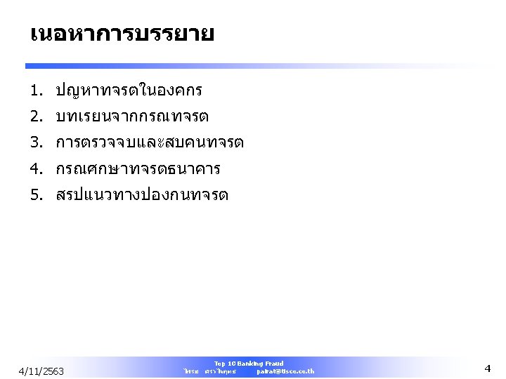 Top 10 Banking Fraud Practical Discussion of Fraud Schemes by Bank Insiders and How to Prevent Fraud from Occurring 4/11/2563 Top 10 Banking Fraud ไพรช ศรวไลฤทธ pairat@tisco. th 1