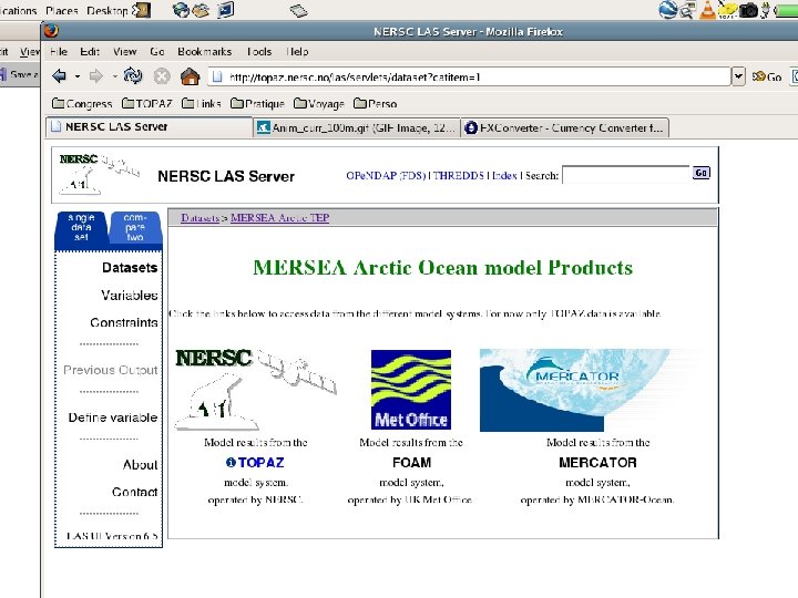 Future Perspectives § Geographical extension § Indian ocean (under development) § Pacific Ocean / South China Sea (Nansen-Zhu, Beijing) § Exhaustive model validation § In collaboration with the MERSEA gang § Real-time assimilation of more observations § § Temperature and salinity profiles (Argo program) Ice thicknesses (CRYOSAT) Sea surface salinity (SMOS / Aqua) New geoid and Mean Dynamic Topography (GOCE) § Progresses in data assimilation § Biases, non-linearity, parameter estimation § Coupling to a global system § Mercator