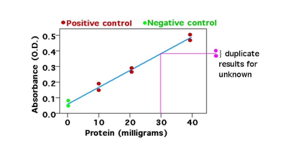 Figure 1. Standard curve of yellow dye at 420 nm. We measured the optical density at 420 nm of four concentrations of yellow dye (1, 2, 3, and 4 drops per sample) using a Spectronic 200 E spectrophotometer at RT. The OD of standard 1 (0. 217 + 0. 0070) was significantly smaller (P<0. 05, student’s t-test) than that of standard 2 (0. 410 + 0. 0057), the OD of standard 2 was significantly smaller (P<0. 05) than that of standard 3 (0. 619 + 0. 0045) and the OD of standard 3 was significantly smaller (P<0. 05) than that of standard 4 (0. 806 + 0. 087). We calculated the standard curve (linear regression y=0. 1977 x + 0. 0186, R 2= 0. 9996). We measured the OD at 420 nm of the unknown sample of the yellow dye(0. 699 + 0. 0054) and used the standard curve to determine its concentration (3. 44 drops per sample).