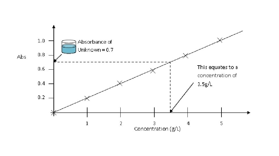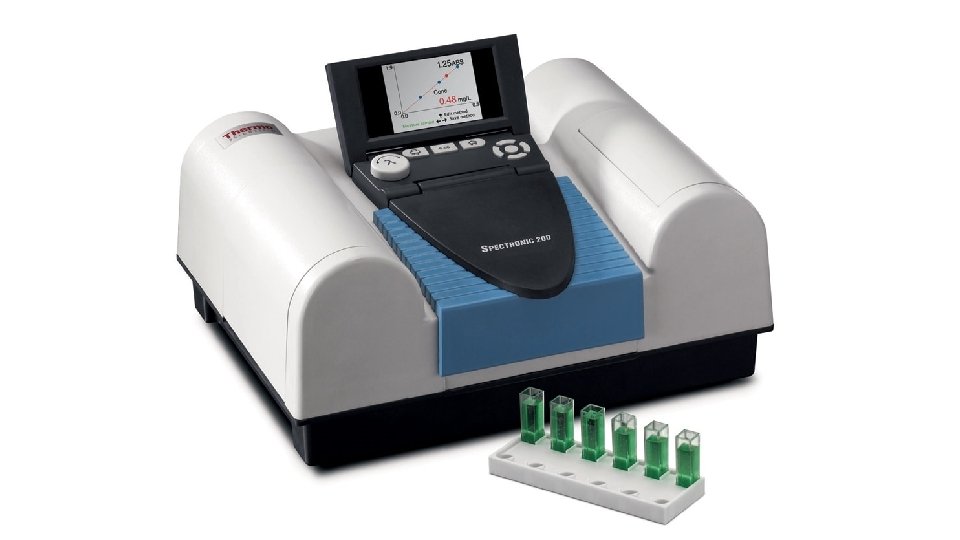 Topic 1: Tools of the laboratory. Exercise I, Experiment 2. Goal: Determine the absorbance spectrum of a dye. Method: Measure the absorbance of a red, blue, and purple solution from 400 nm to 700 nm in 20 nm increments at room temperature using a Spectronic 200 E spectrophotometer. Results: The spectrum of the red dye showed one large peak with maximum at 500 nm (Figure 1). The spectrum of the blue dye had a single broad peak with maximum at 620 nm. The spectrum of the purple dye had two peaks one with maximum at 500 nm and one with maximum at 620 nm. Conclusion: The red dye had an absorbance maximum at 500 nm and the blue dye had a maximum at 620 nm. The purple dye was a combination of the red and blue dye. Explanation: The red dye absorbs blue light; the blue dye absorbs red light.