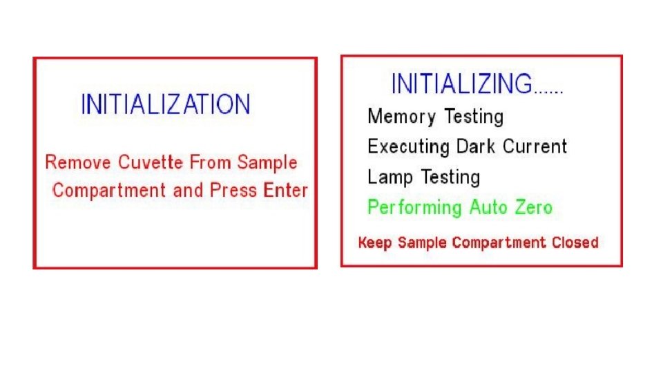 Place a cuvette containing a blank solution in the sample stage and press 0. 00 and wait until the screen displays the message “Performing Auto Zero”. The instrument will restart live display readings as soon as the auto zero measurement is complete. To freeze the display, press Enter.