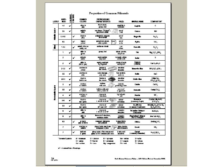 Minerals are identified by their key characteristics • hardness • crystal shape (form) • luster • color • streak • cleavage/fracture • density (specific gravity) • special properties -reaction to acid -fluorescence -salty taste -magnetism