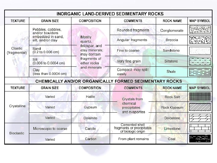 Sedimentary Rocks: 1. Clastics • Rocks that form when sediments (sand, silt etc. ) are lithified. Processes • Compacting and cementing • Vary due to grain size! (see ref tables p. 7)