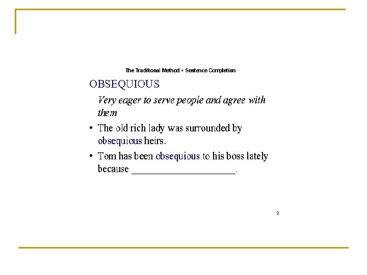 Methods— The participants were 36 high school students from two classes in two schools located in northeastern Georgia, USA. 2. The independent variable was the teaching method and the dependent variable was the score on the posttest, and the two factors in this design are sentence completion and display of antonyms. 1.