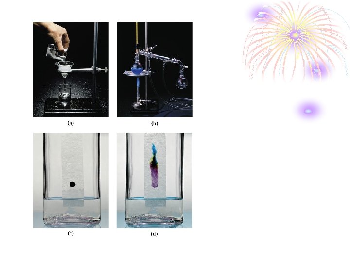 Chromatography • Used to separate components of a solution • Ex. Paper chromatography separate black into the colored dyes it contains