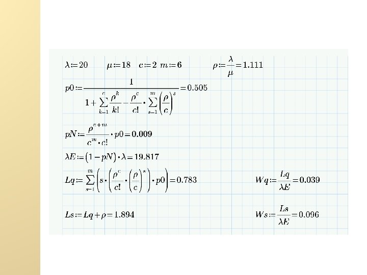 �Probability of all channels (=c) are busy and s units in the line �The average number of units in line waiting for service.