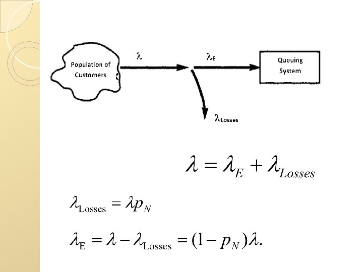 Model D (M/M/c): ( /N/ ) Multi-Channel Queuing Model with Poisson Arrivals and Exponential Service Times with a finite queue The service system can accommodate N customers only. The (N+c)th customer will not join the queue. c – number of channels. m (= N – c) – capacity of the queue. Due to restriction in the allowable number of customers in the system, the service system will be interested to know the expected number of customers who are lost. This can be found out by determining the probability of customers not joining
