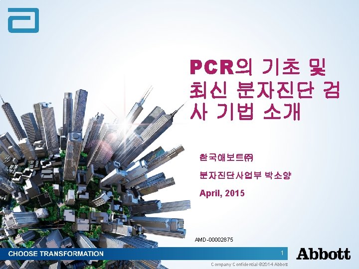 Topics • PCR Overview • PCR Applications • PCR Formats AMD-00002875 2 Company Confidential © 2014 Abbott