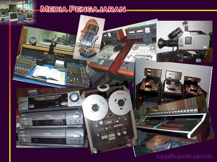 MEDIA Ä Saluran komunikasi. Ä Perantara. Ä Pembawa maklumat daripada penyampai kepada penerima. Ä Contoh: filem, televisyen, radio, rakaman audio, gambar foto, bahan bercetak, komputer dan pengajar. Ä Heinich et al. (2002), membantu proses komunikasi.