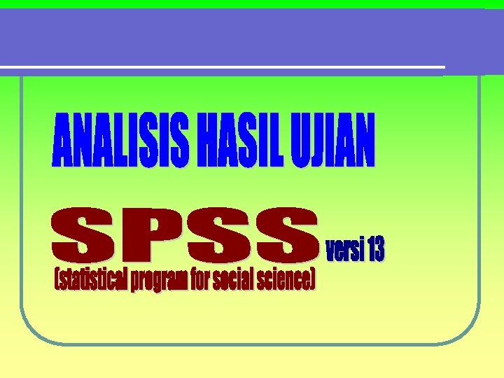 CONTOH ANALISIS BUTIR SOAL URAIAN/PRAKTIK DENGAN PROGRAM SPSS (Statistical Program for Social Science) 1. Klik “Variable View” (letaknya di sebelah kiri bawah) 2. Ketik Siswa pada kolom “Name” kemudian klik pada kolom “Type” pilih/diklik “String”. 3. Ketik S 1 pada kolom “Name”. (di bawah Siswa) (S 1= soal nomor 1) 4. Ketik S 2 pada kolom “Name” (di bawah S 1) 5. Ketik S 3 dst. Pada kolom “Name” (di bawah S 2 dst. ) 6. Ketik Jumlah pada kolom “Name” 7. Klik “Data View” (letaknya di sebelah kiri bawah), kemudian masukkanlah data sesuai dengan kolomnya. 8. Contoh data seperti berikut: 9. 10. 11. 12. 13. 14. Siwa Ali Budi Cici Dodi Edward S 1 6 5 3 3 2 S 3 5 7 4 6 2 5 2 4 1 3 S 4 5 4 3 3 2 S 5 6 6 5 5 4 S 6 8 7 7 6 5 S 7 7 7 6 5 3 S 8 5 5 4 3 3 S 9 5 4 3 3 2 S 10 Jumlah 6 6 5 5 3