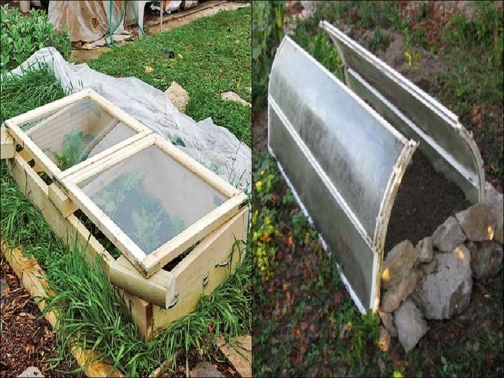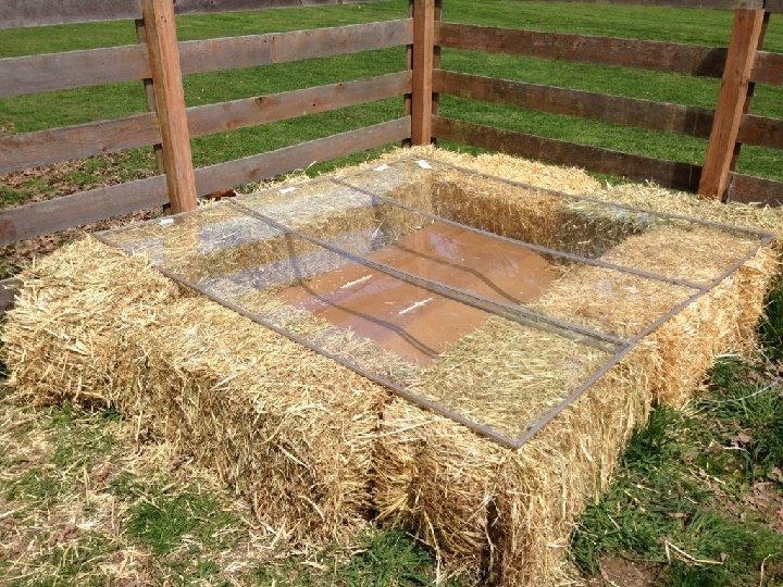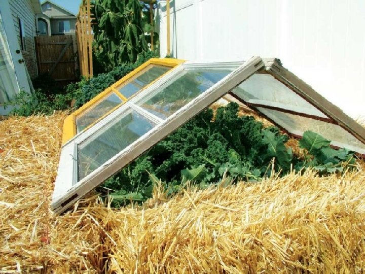 • Negašeni kreč još daje i toplotni stimulans, jer se postepenim gašenjem oslobađa toplota koja je potrebna za aktiviranje mikro organizama • Na tako pripremljen trap postavlja se ram od čistih dasaka • Leja treba da se orijentiše u pravcu istok-zapad, po dužini • Sjeverna strana rama treba da bude viša za 5 -10 cm u odnosu na južnu, što može da se postigne ugradnjom jedne šire daske u ram ili podmetanjem komada cigle pod ram sa sjeverne strane • Ovaj nagib je potreban iz dva razloga: 1. Omogućava kosi položaj prozora i normalno slivanje vode sa krova 2. Omogućava bolje prodiranje sunčevih zraka u leju, što je veoma važno za griejanje leje kroz staklo i dobro osvjetljavanje biljaka