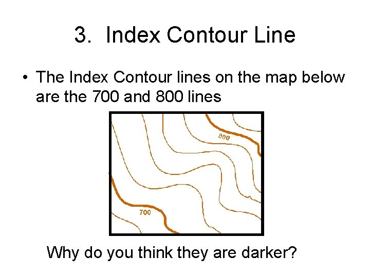 3. Index Contour Line • The Index Contour lines on the map below are the 700 and 800 lines Why do you think they are darker?