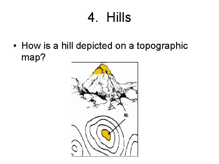 Hills • Closed contours in a circle or elliptical (oval) shape • “Bulls eye”