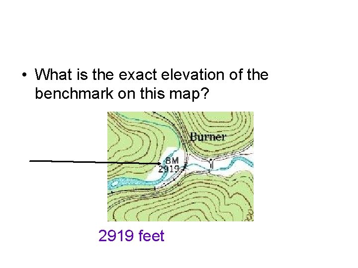 • What is the exact elevation of the benchmark on this map? 2919 feet