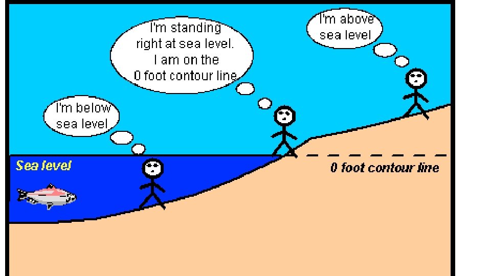 Topographical Map (Contour Map) • A type of map indicating elevation in relief (highs and lows, like hills and valleys), using contour lines. • Elevation – height above or below sea level