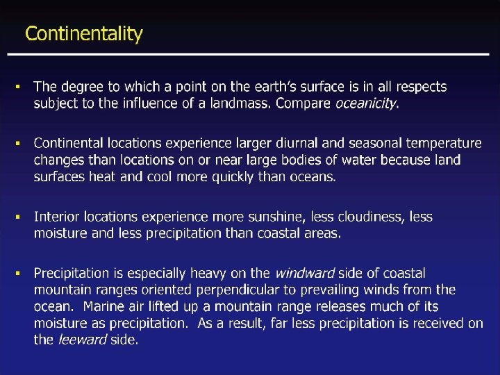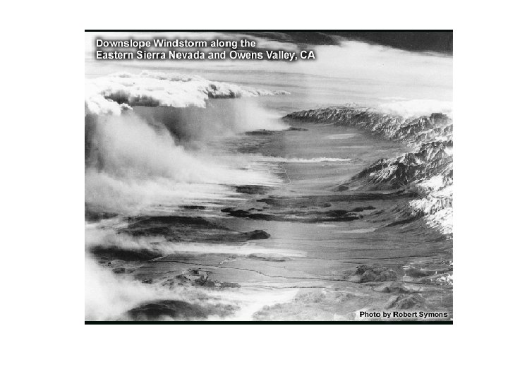 Topography (Climate) • Regional: 100’s of kilometers – Chinook winds – Mountain waves and resulting clouds • Mesoscale: 1 to 10’s of kilometers – Mountain-valley system of winds • Local Scale: meters to kms