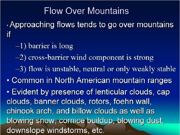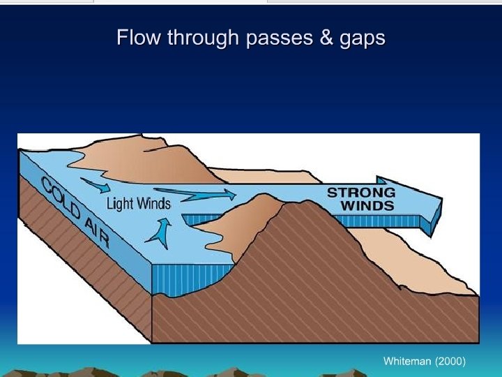 Flow over mountains and through mountain passes • why is it sometimes very windy: – on the peaks of mountains? – in a mountain pass?