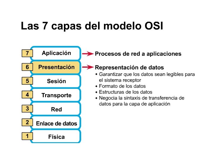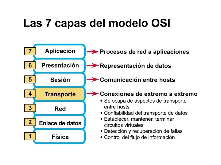Su propósito es enviar paquetes origen desde cualquier red en la internetwork y que estos paquetes lleguen a su destino independientemente de la ruta y de las redes que recorrieron para llegar hasta allí. Se ocupa de todos los aspectos que requiere un paquete IP para realizar realmente un enlace físico y luego realizar otro enlace físico. Maneja protocolos de alto nivel, aspectos de representación, codificación y control de diálogo Se refiere a los aspectos de calidad del servicio con respecto a la confiabilidad, el control de flujo y la corrección de errores.