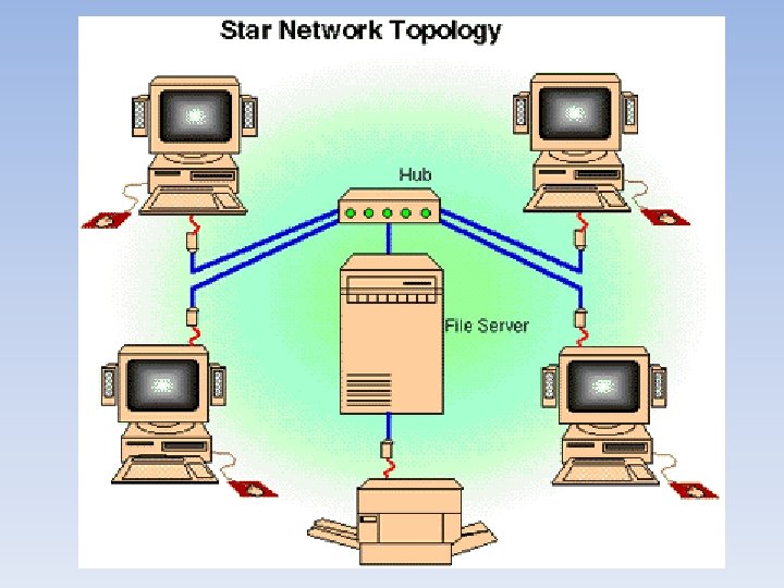 Keuntungan Topologi Star • Mudah instalasinya • Tidak akan mempengaruhi jaringan, jika ada komputer atau peripheral yang mati atau tidak digunakan (lebih handal) • Mudah untuk mendiagnosa permasalahan jaringan.