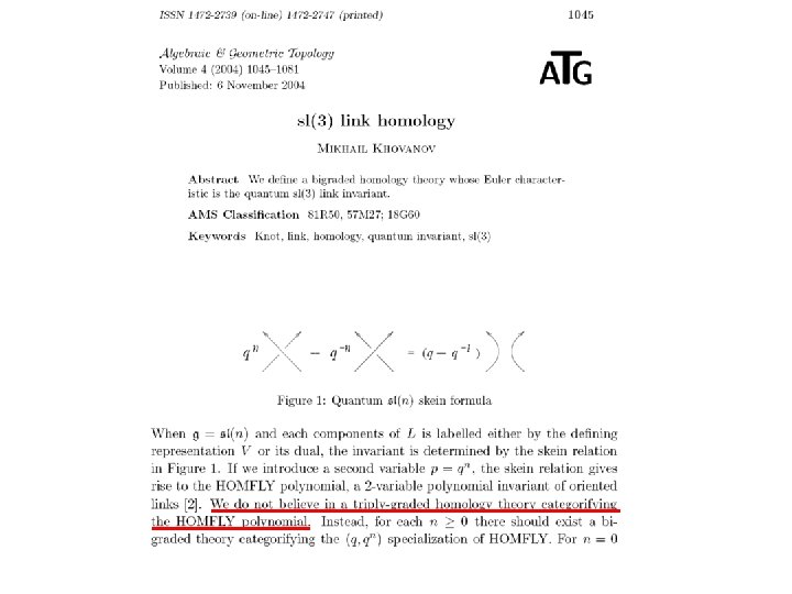 ![Knot Homologies • Khovanov homology: [M. Khovanov] Example: 3 2 1 0 i 1 Knot Homologies • Khovanov homology: [M. Khovanov] Example: 3 2 1 0 i 1](https://slidetodoc.com/presentation_image_h/13749e021da0405c531413849bbaa296/image-34.jpg)