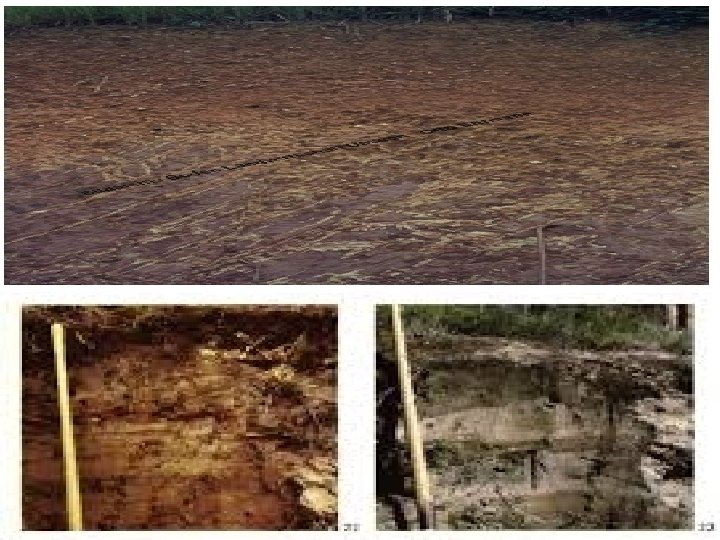 HIDROMORFIK TOPRAKLAR � Bu topraklar taban suyu seviyesinin yüksek olduğu Muş Ovası, Erzurum Ovalarının doğu kesimlerinde Çukurova’da eski akarsu yataklarında Menderes, Gediz, Yeşilırmak, Çarşamba ve Adapazarı ovalarında toprağın uzun süre su altında kalması ile oluşmuşlardır. � Bu topraklar oksijensiz bir ortamda oluştuklarından dolayı genelde renkleri boz, yeşil, mavimsi renktedirler.