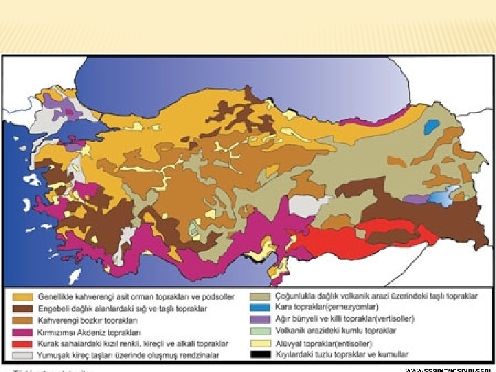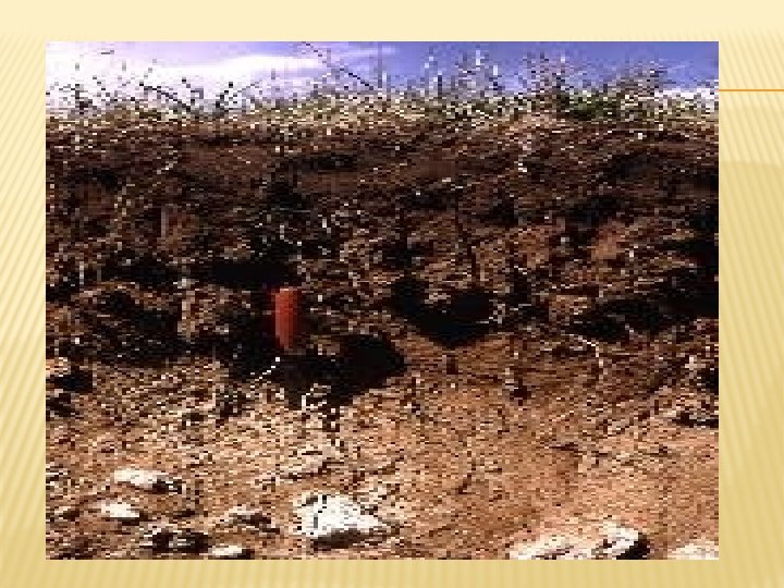 • ALKALI TOPRAKLAR � Ana kayada buluna karbonatlar toprağın yüzeyinde birikmişlerdir bu yüzden kuvvetli alkalen reaksiyon gösteririler. � İç Anadolu’da Ereğli’nin kuzeyi Karapına’ın doğusu ve kuzeyinde görülürler.