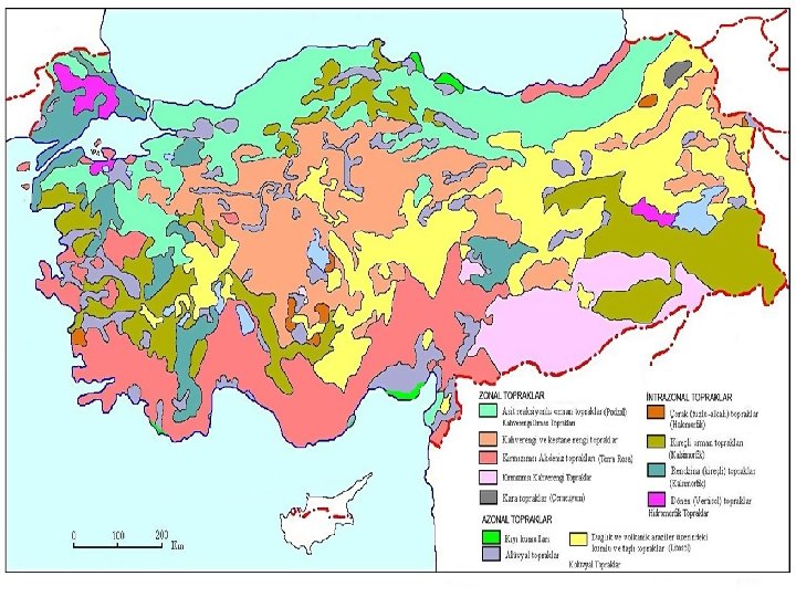 � Toprak kireç taşı üzerinde oluşsa bile kireçli bir yapıda değildir bunun sebebi yeterince yıkanmış olmasıdır. � Toros dağlarında 1000 m den yüksek sahalarda toprağın rengi organik madde birikiminden dolayı koyulaşarak kırmızımsı kahve ve kahverengine dönüşmektedir.