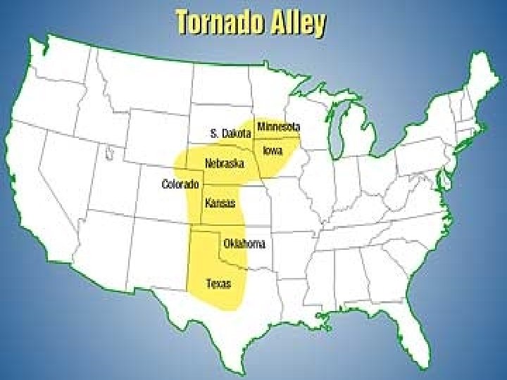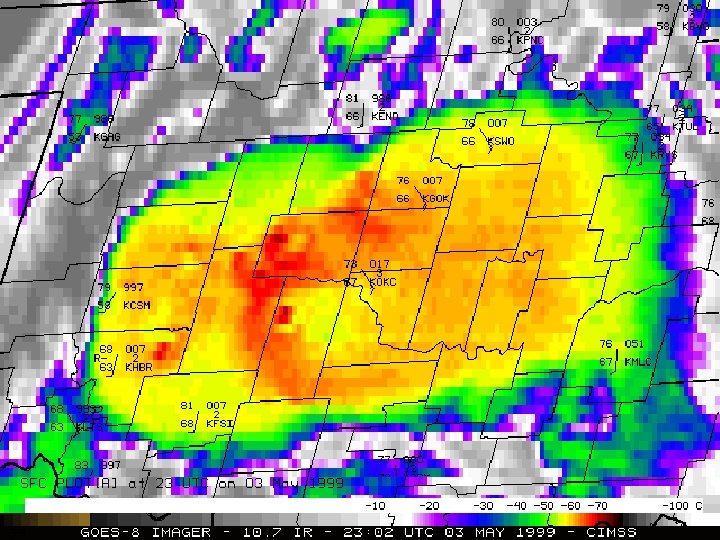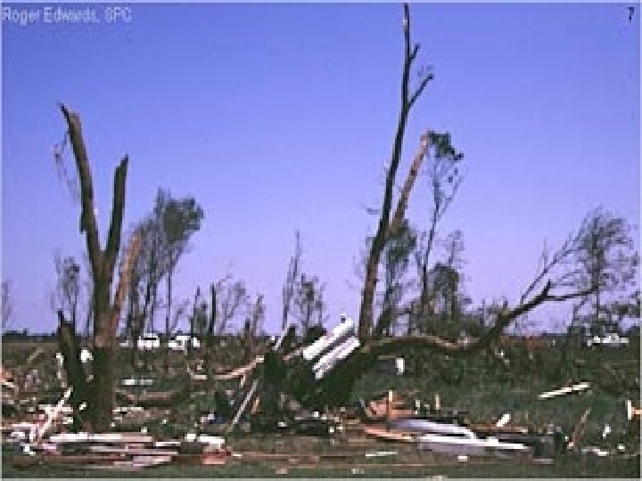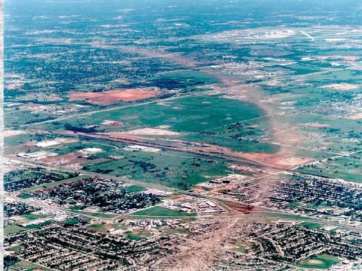 Some Significant Tornadoes • Oklahoma City, OK, May 3, 1999: On Monday evening, May 3, a long track F 5, violent tornado traveled from near Chickasha, Oklahoma, to just east of Oklahoma City, Oklahoma. Along its path this tornado produced areas of F 5 damage to both rural sections of central Oklahoma as well as densely populated areas of Oklahoma City and its suburbs. In the wake of this single tornado, there were 42 people left dead, several hundred injured and over 1 billion dollars in damage.