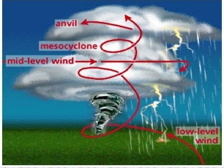 Tornadoes • A tornado is a violently rotating column of air in contact with the ground and out from a cumulonimbus cloud. • Tornadoes are capable of inflicting extreme damage.