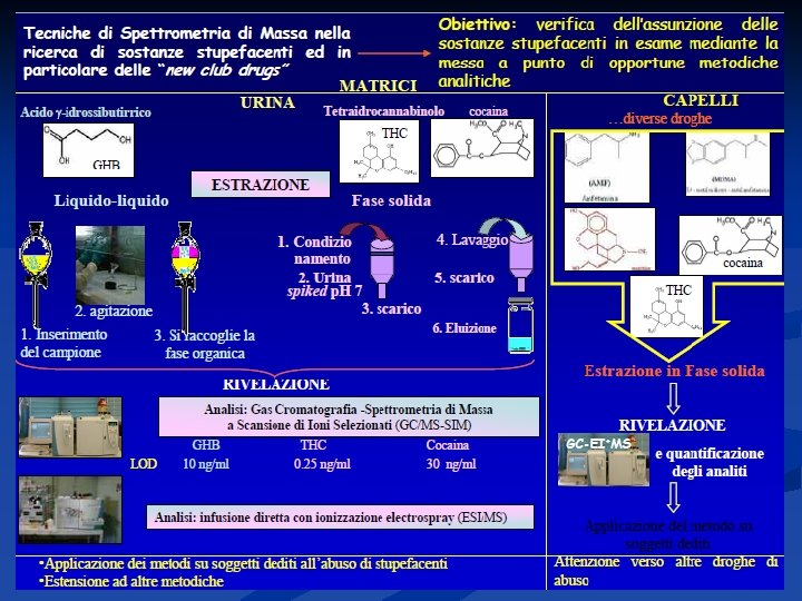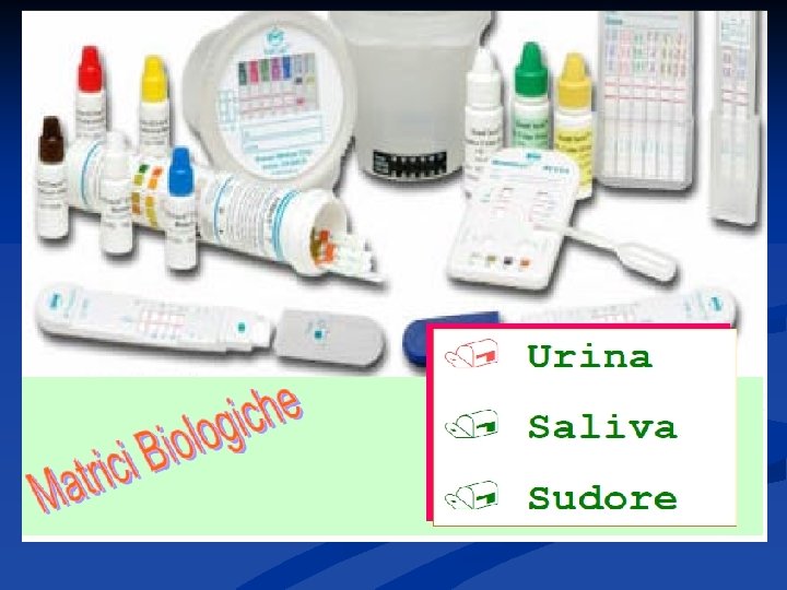• Raccolta del campione • Catena di Custodia Referto negativo Risultati < 24 ore Trasporto Negativo Laboratorio di Tossicologia Forense Immuno Assay Positivo Immuno Assay #2 Positivo Conferma Validità medico. GC/MSlegale del dato LC/MS Referto Negativo o Positivo 48 - 72 ore