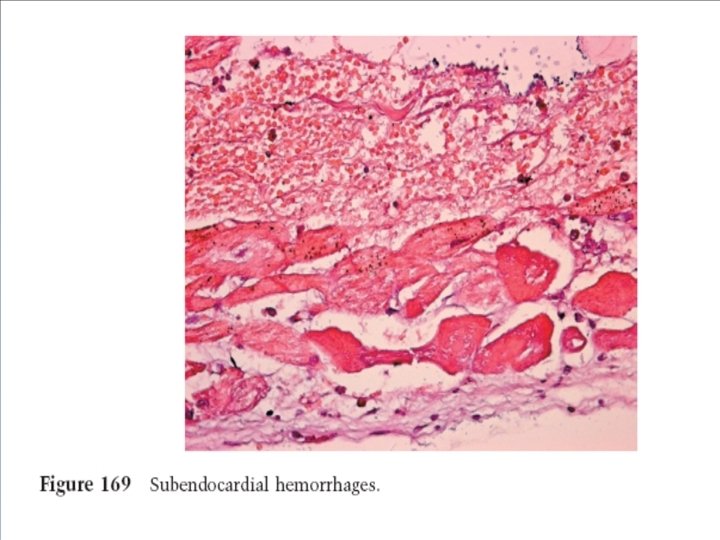 Reperti autoptici n n n n Petecchie subsierose diffuse Stasi poliviscerale Edema cerebrale, segni di ipossia neuronale, emorragie perivascolari ad anello CBN in assenza di necrosi miocitaria e risposta macrofagica, emorragie subendocardiche Emorragie subpleuriche ed endoalveolari, edema polmonare Steatosi microvescicolare, aspetti di necrosi Mioglobina intratubulare, formazioni microtrombotiche glomerulari, necrosi