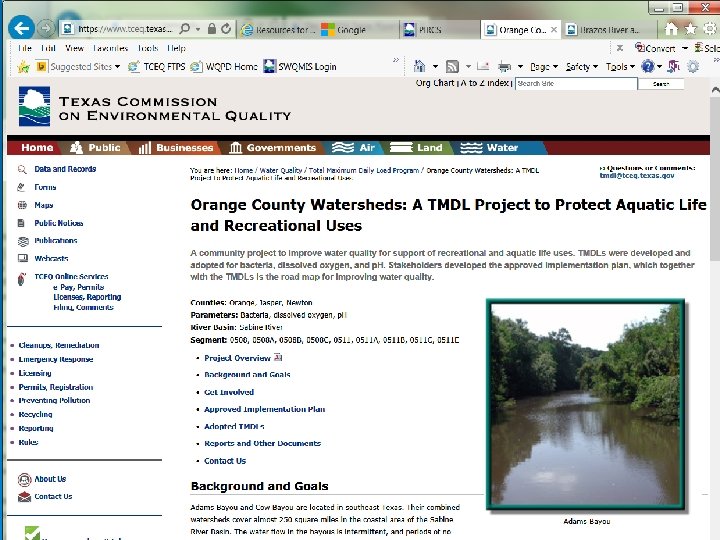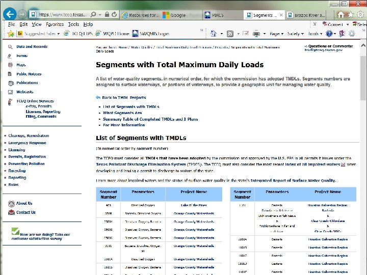 TMDLs in Texas As of August 2017 TMDLs Stream Segments Stream Miles Watershed Area (Mi 2) 225 59 2, 412 25, 618