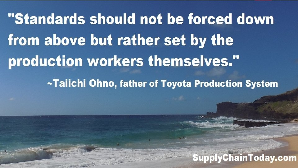 “Why not make the work EASIER and MORE INTERESTING so that … PEOPLE DO NOT HAVE TO SWEAT? The Toyota style is NOT to create results by WORKING HARD. It is a SYSTEM that says there is NO LIMIT to people’s CREATIVITY. People don’t go to Toyota to ‘work’ they go there to ‘THINK’” – Taiichi Ohno