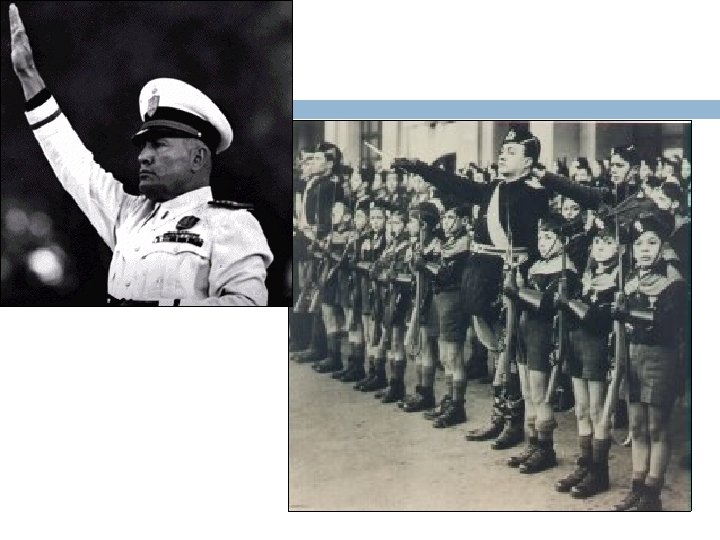 Benito Mussolini Militant, Nationalist, Anti-Communist, news editor Starts the Fascist party 1921 � The “Black Shirts, ” gangs of fascist thugs terrorize socialists Takes power during postwar struggles � After Socialists win parliamentary seats leading to class tension in Italy, appealing to desire for order and protection
