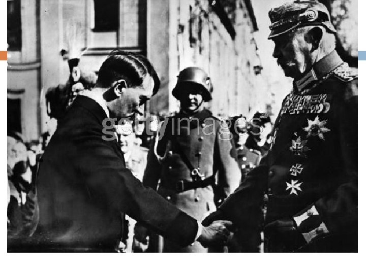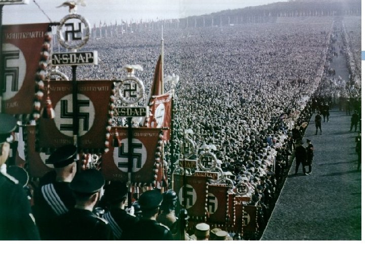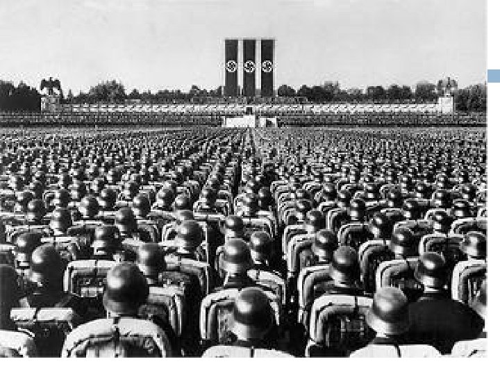 Nazi Germany Military swears allegiance to Hitler personally Schools, youth groups used for indoctrination � Dissenting books burned, degenerate art destroyed � Huge propaganda campaigns, staged rallies Rearms German military � Creates jobs and industries, defies Versailles treaty � Britain and France do nothing Massive public works projects � Ex: The Autobahn