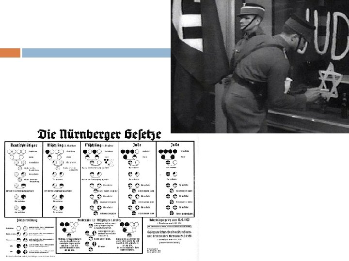 Anti-Semitism Nazis blame Jews for loss in WWI and economic troubles � Lead boycotts of Jewish owned stores “Nuremburg Laws” (1935) strip Jews of citizenship Kristallnacht (1938): night of organized violence against Jews