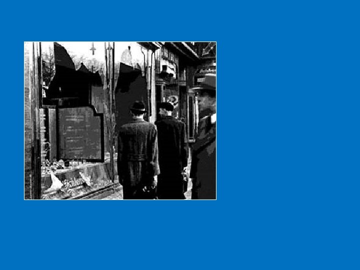 El Nazismo o Nacionalsocialismo • Antisemitismo y “Solución Final”: Leyes de Nuremberg (1935) Prohíben matrimonios entre arios y judíos. “Limpieza étnica”: esterilización de gitanos, homosexuales, enfermos mentales Sólo arios eran ciudadanos del Reich; los judíos eran considerados extranjeros. Segregación de judíos en Guettos. Progromos: persecución y ataque a judíos “Noche de los Cristales rotos”, 9 -9 de noviembre de 1938 Envío de 20. 000 judíos a Campos de Concentración.