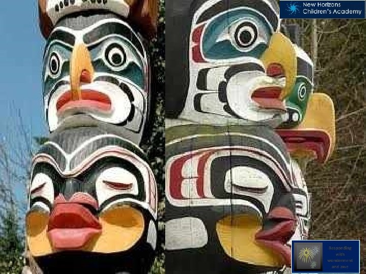 Designing your own totem pole • You are now going to design your own totem pole, using the animals you have selected. • You will now see pictures of Native American totem poles. • Pay close attention to how the animals are drawn and carved. • Take note of the colours used. • You will need to draw your totem pole in the same style as the Native American totem poles.