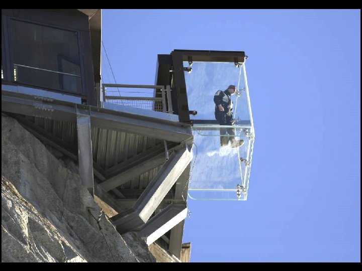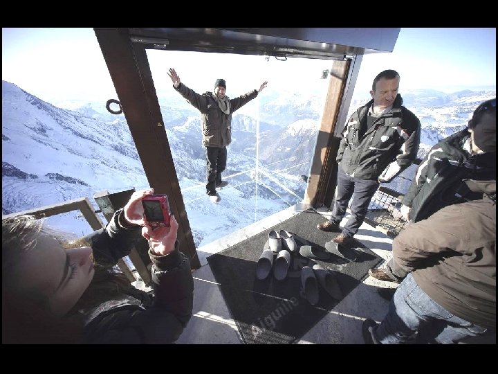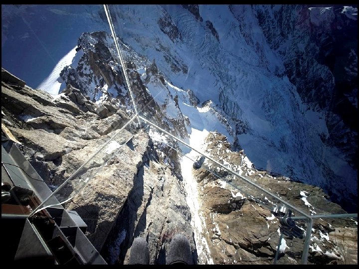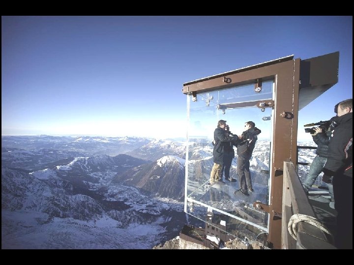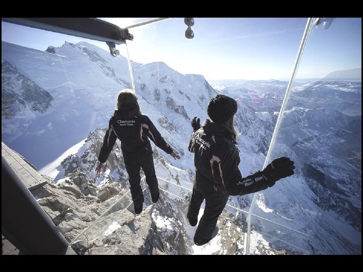 Ce plancher de verre au Mont Blanc, (France) permet de marcher à 914 mètres au-dessus du vide. Il ne possède aucune armature de métal qui vous donnerait une impression de sécurité !