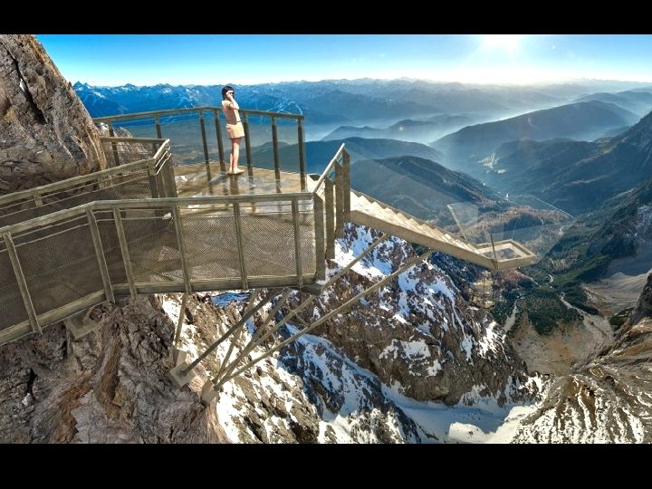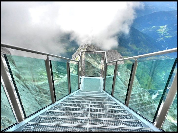 Dachstein : ce pont au nom très romantique de : "Escalier vers le vide" est construit sur le bord d'une falaise de 400 mètres de surplomb dans les Alpes autrichiennes.