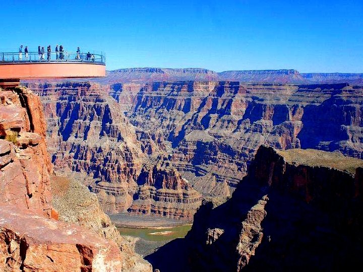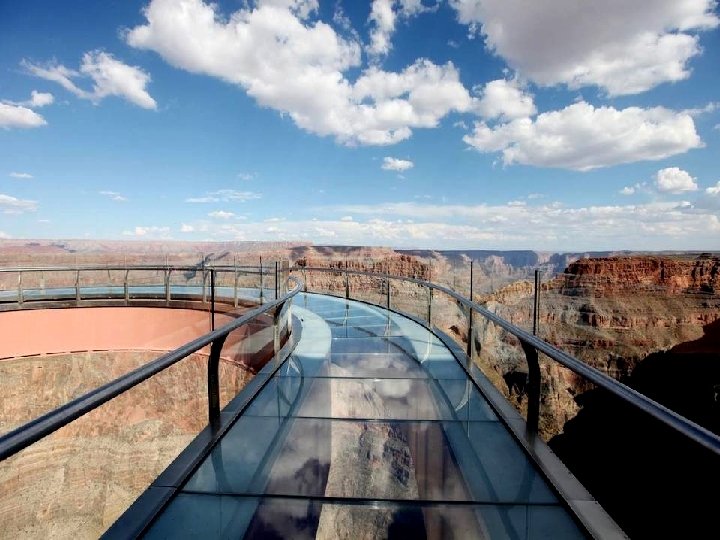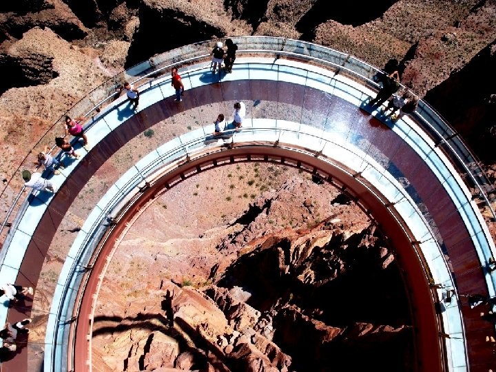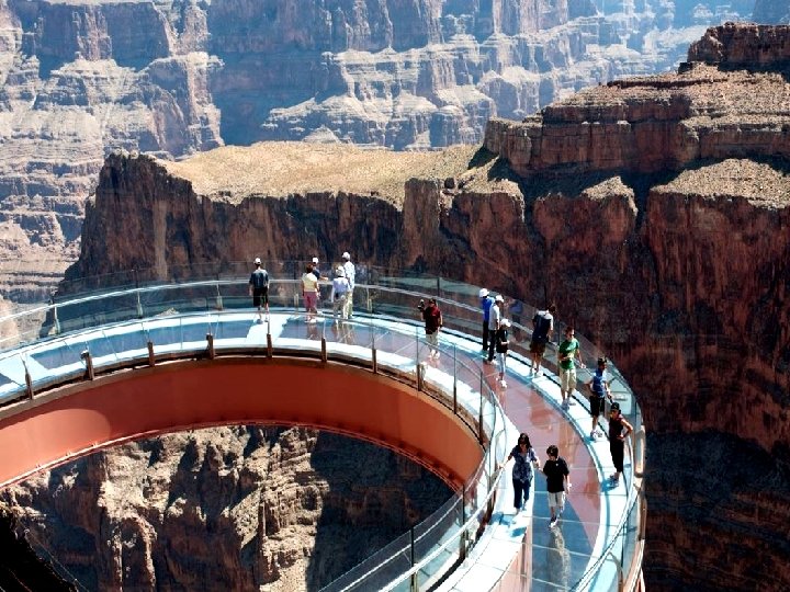 Ce pont de verre de 21 mètres de long (état de l'Arizona, dans le Grand Canyon) se promène à 244 mètres d'altitude.