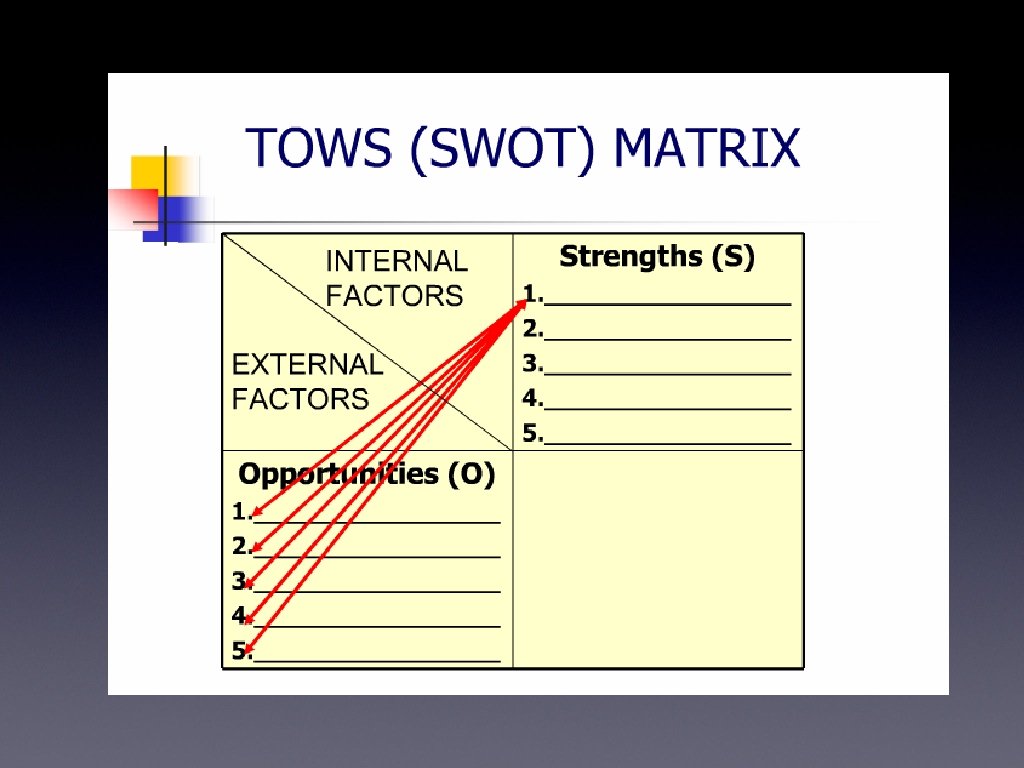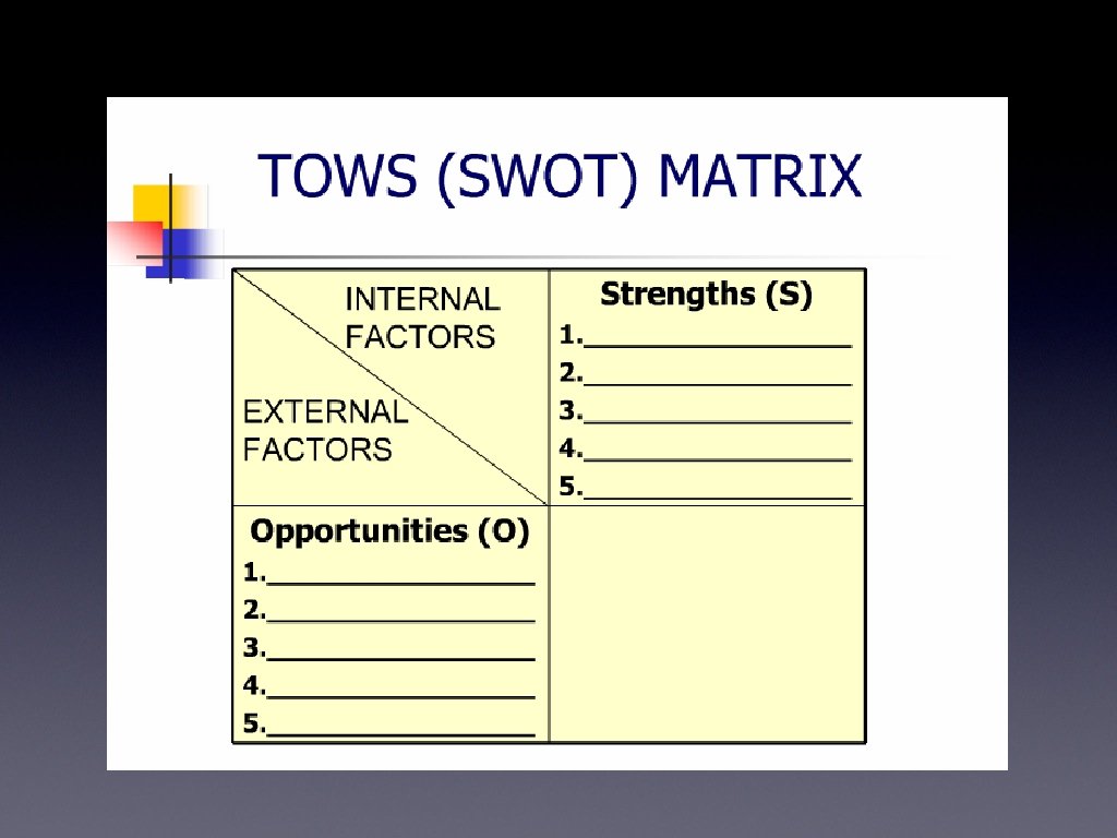 TOWS SWOT Analysis List down all Strengths Weaknesses