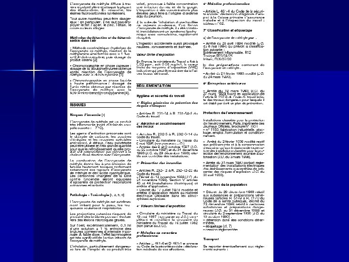 Plan Généralités n Toxicité aiguë n – Toxicité du methylisocyanate – Toxicité d’autres isocyanates n Toxicité chronique – Cas clinique – Rappel théorique