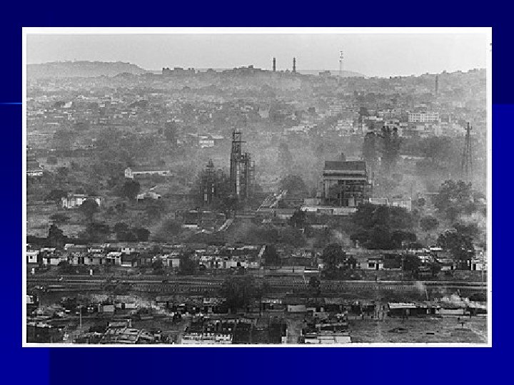 4 décembre 1984 : Bhopal, en Inde. n Vers minuit, une fuite de methyl isocyanate (MIC) se produit à l'usine de pesticides Union Carbide - située au milieu d'un bidonville. n Près de 4 000 personnes meurent asphyxiées. n
