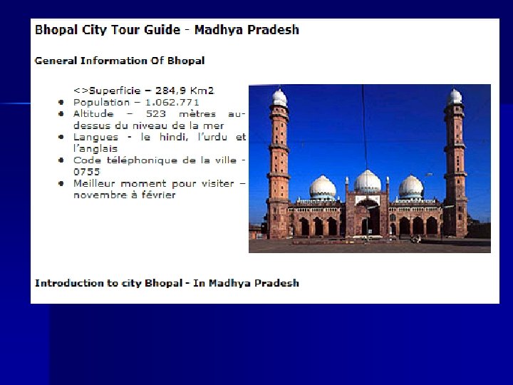 Bibliographie n n n Toxicologie industrielle et intoxications professionnelles R. R. Lauwerys Ed Masson Médecine et risque au travail P Catilina, M-C. Roure-Mariotti Ed Masson Axford et al. Accidental exposure to isocyanates fumes in a group of firemen Br. J. Ind. Med. 33, 65, 1976 Lequesne et al. Neurological complications after a single severe exposure to toluene di-isocyanate Br. J. Ind. Med. , 33, 72, 1976 Document national de préparation au contrôle des connaissances de la capacité de médecine en santé au travail Collège des enseignants hospitalo-universitaires de médecine du travail www. cdc. gov/niosh www. ineris. fr www. inrs. fr www. monde-diplomatique. fr www. mapsofindia. com www. la-bas. org www. greenpeace. org