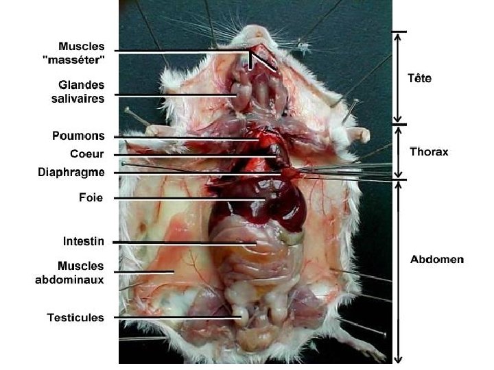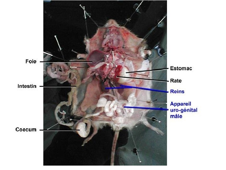 1. Réaliser un dessin d’observation titré et légendé de l’appareil digestif de la souris : - Légendes à mettre : glandes salivaires, œsophage, estomac, intestin, coecum (renflement de l’intestin) foie, vésicule biliaire, rate - Représenter les reins sur le dessin et les légender. 2. Présente le trajet des aliments dans l’ordre le long du tube digestif de la bouche à l’anus.