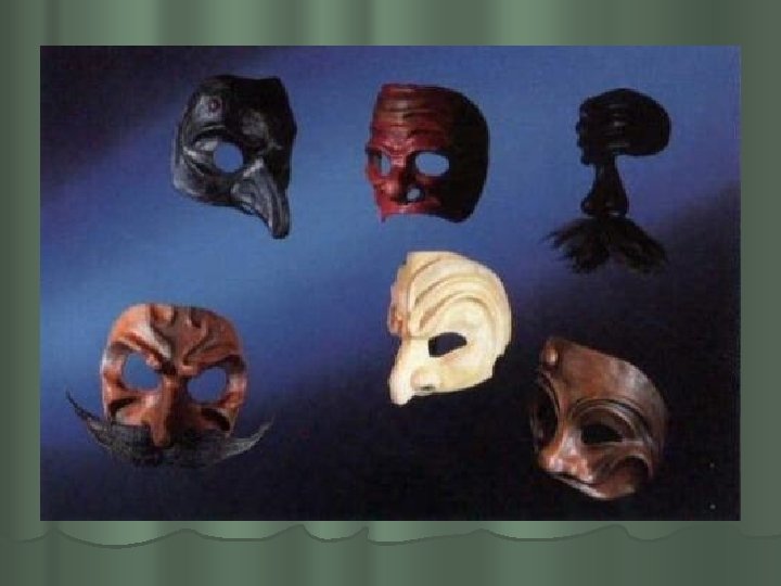 Maskid l Sageli muutus roll eluaegseks maskeeringuks. Näitleja sulas rolliga niivõrd ühte, et loobus oma nimest tegelase nime kasuks, samastudes rolliga ning loobudes oma identiteedist. l Iga mask kuulus kindlalt eristatavasse gruppi ning ühest teise ülemineks oli peaaegu mõeldamatu. Erandiks olid vaid noored armastajad (amorozi, laval ainsana maskideta), kes nooruse ja ilu kahanedes ning mõne koomilise detaili lisandudes võisid saada koomiliseks teenriks (zanni).