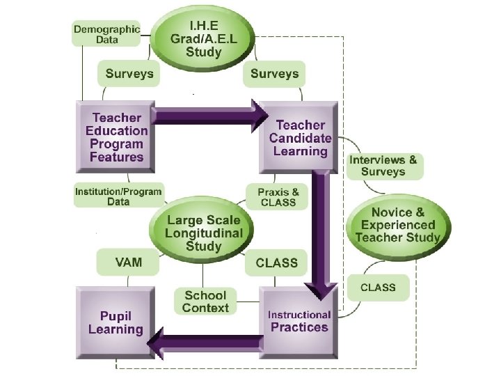 Longitudinal Graduate Follow-up Study • Survey student teachers ‘ 03 -’ 04 through ’ 08 -’ 09 – Anticipate 30, 000+ participants – Printed or on-line surveys administered by institutional liaisons – Expect to add value-added scores of graduates • Follow novice teachers each year through ’ 08 -’ 09 – Anticipate 5, 000+ participants – Printed or on-line surveys