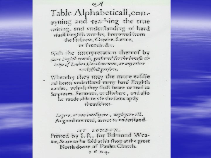 Esordi della lessicografia anglo-italiana § William Thomas (1550) § John Florio (1558) (1611) § Giovanni Torriano (1659) § Ferdinando Altieri (1726 -27; 1750) § Giuseppe Baretti (1760)